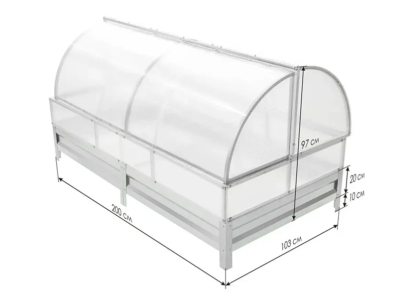 Парник хлебница изготовлен из качественных материалов, идеально подходит для обеспечения оптимальных условий для выращивания растений. Его длина 2 метра, ширина 1 метр и высота 1 метр обеспечивают достаточно места для размещения растений. Высота борта грядки составляет 20 см, что позволяет создать комфортные условия для роста культур.